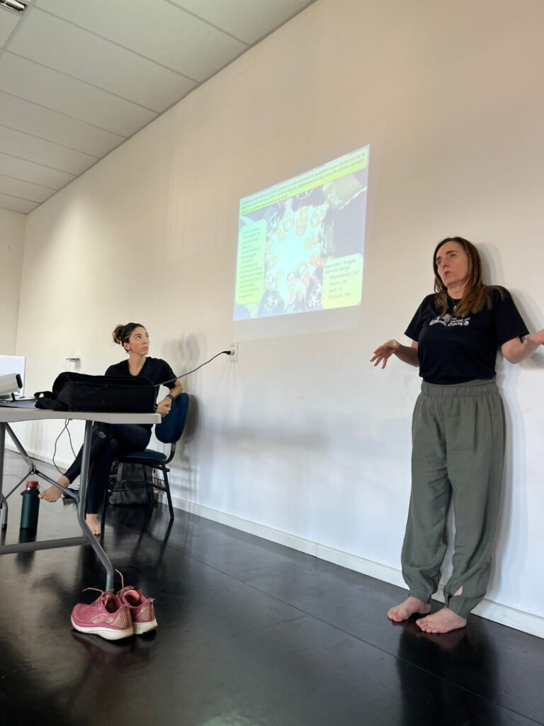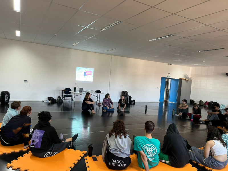 Foi a oportunidade para compartilhar a jornada e os profundos referenciais teóricos do Programa Usina da Dança. A aula, realizada no dia 26 de setembro para os alunos do segundo ano da graduação, teve sua sala lotada e contou com a participação da professora de dança contemporânea do IORM, Vivian Vinha — também formada pela Unicamp. Durante três horas, que mesclaram teoria e prática, Valéria Pasetto detalhou as mais de duas décadas de construção artística, social e cognitiva que fazem do IORM uma ferramenta de transformação.