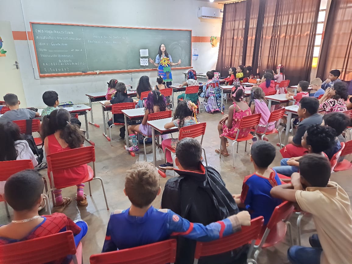 Ao longo do mês de outubro, a magia da literatura envolveu as escolas municipais de Miguelópolis. As unidades receberam a contadora de histórias Tia Nuna, que encantou as crianças com sua energia contagiante, expressividade e sensibilidade, transformando cada encontro em uma verdadeira viagem pelo mundo da imaginação, do aprendizado e da emoção. No dia 8 de outubro, a EMEB Jacinta Barbosa Ferreira recebeu as narrativas “Tambor do Amor” e “Pedro Vira Porco-Espinho”. O momento foi de encantamento, imaginação e sensibilidade. Em dois grupos, totalizando 237 crianças, as histórias emocionaram, divertiram e despertaram o gosto pela leitura. No dia 10 de outubro, foi a vez da EMEB Professora Maria Peralta Cunha, onde cerca de 196 pessoas participaram da atividade. Mais uma vez, o clima foi de alegria e encantamento, com histórias que suscitaram reflexões profundas sobre o cuidado com o outro e a força dos laços humanos, transformando o encontro em uma vivência de escuta sensível, ternura e partilha. Na mesma data, o Colégio Objetivo também recebeu uma tarde repleta de imaginação e diversão. Durante a contação de “Pedro Vira Porco-Espinho”, o ponto alto aconteceu a cada transformação do personagem, despertando risadas, surpresa e comentários animados das crianças. Entre o riso e a imaginação de “Pedro Vira Porco-Espinho” e a reflexão e ternura de “Tambor do Amor”, ficou evidente o poder das histórias de transformar momentos comuns em experiências significativas e memoráveis.