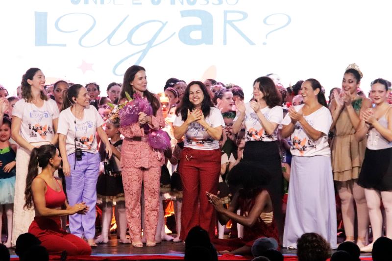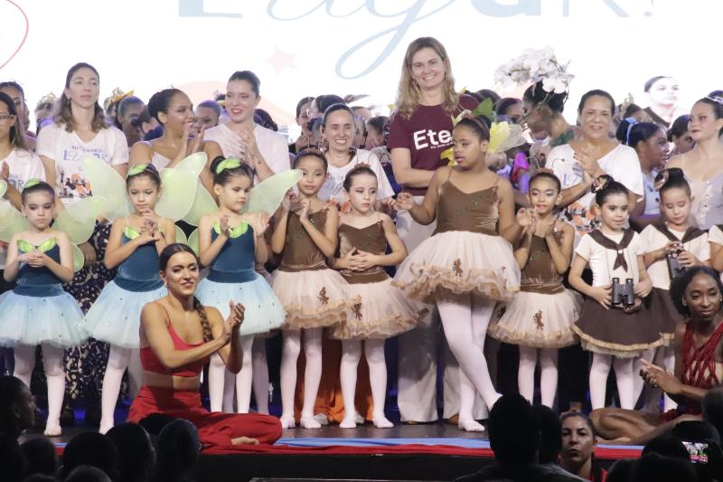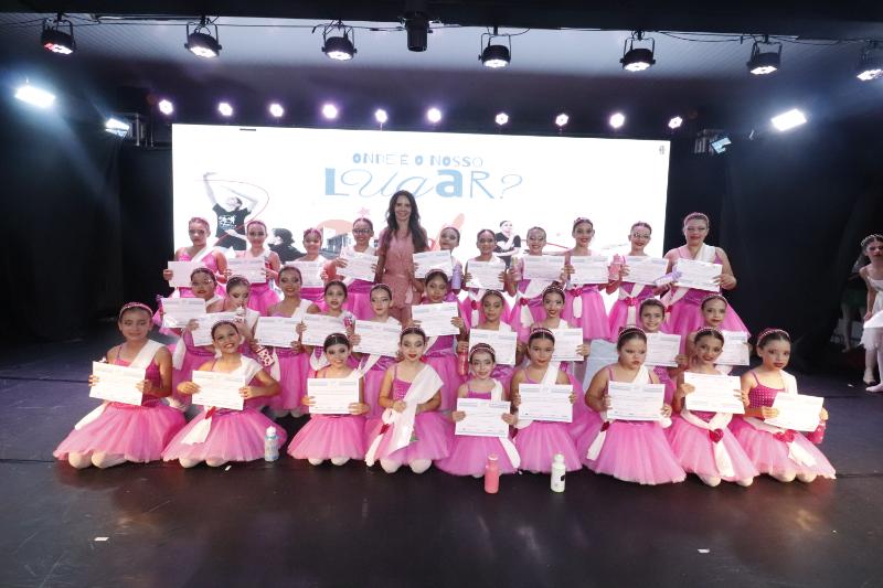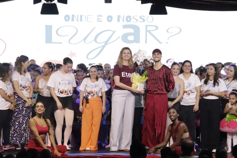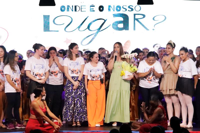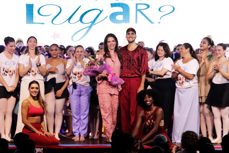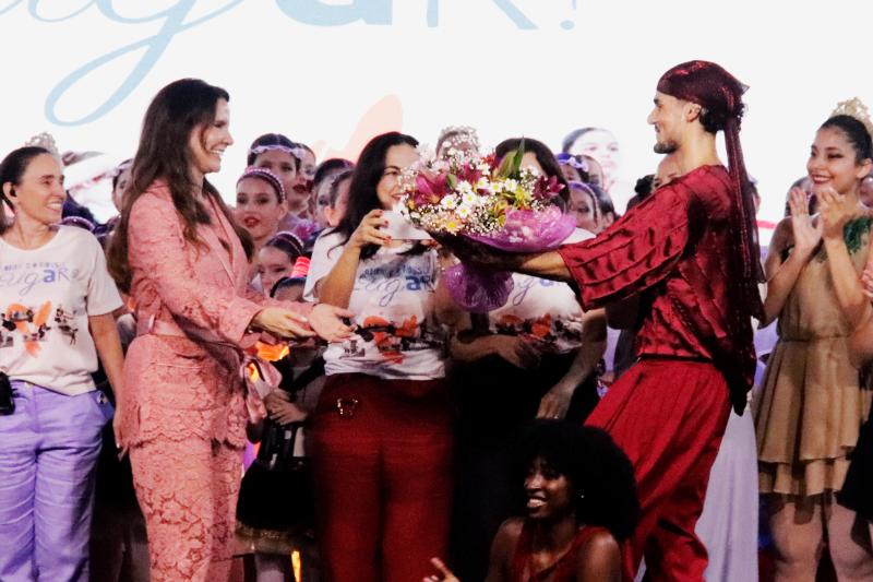 A coordenadora do Conselho do IORM, Maria Inês Marcório Guedes Moreira de Carvalho, escolheu a plateia de Orlândia para celebrar o seu aniversário. Em um gesto de profunda gratidão e carinho, a aniversariante recebeu uma homenagem pública: um coro vibrante e emocionado, formado por centenas de bailarinos, educadores e equipe técnica, entoou os parabéns diretamente do palco.