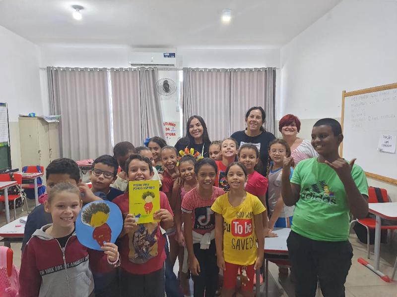 O encontro contou com a apresentação dos livros “Tambor do Amor” e “Pedro vira porco-espinho”. Durante a narrativa de “Tambor do Amor”, as crianças se mostraram atentas e participativas, reagindo com empatia e curiosidade à história que valoriza a amizade, o respeito, a união e o afeto. Já com “Pedro vira porco-espinho”, o clima foi de alegria e descontração, estimulando a imaginação e a criatividade em um ambiente acolhedor.