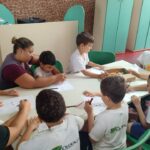 Para encerrar esse encontro tão especial, foi realizado uma atividade artística, onde os alunos puderam fazer uma releitura da Menina Bonita do Laço de Fita. Cada um expressou suas ideias e sentimentos através das cores, traços e colagens, resultando em produções cheias de criatividade e significado.