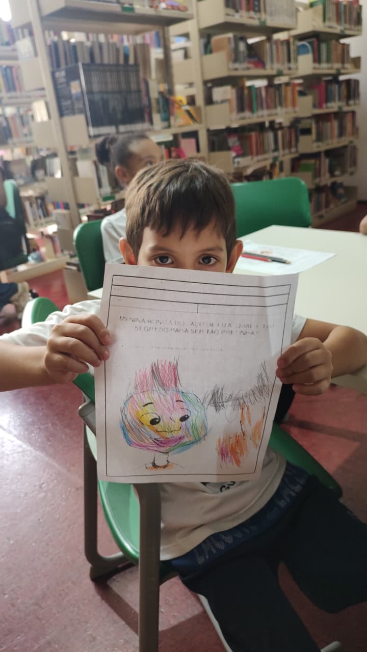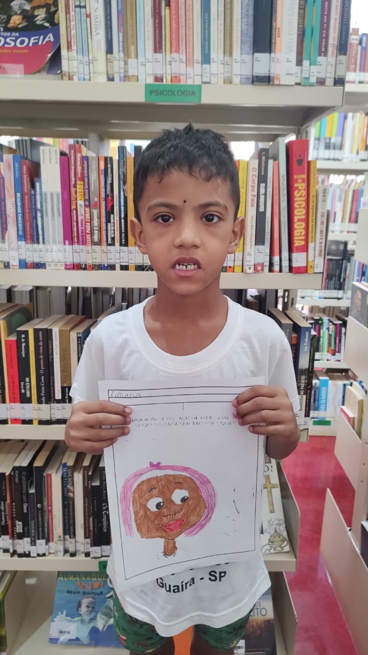 Para encerrar esse encontro tão especial, foi realizado uma atividade artística, onde os alunos puderam fazer uma releitura da Menina Bonita do Laço de Fita. Cada um expressou suas ideias e sentimentos através das cores, traços e colagens, resultando em produções cheias de criatividade e significado.
