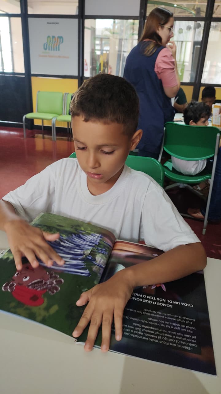 os alunos da APAE foram recebidos com muito carinho e puderam conhecer um pouco mais do acervo disponível. Foi uma tarde cheia de sorrisos, descobertas e olhares curiosos. Eles se encantaram com cada detalhe, mas o que mais chamou atenção foram os livros pop-up, nossa mais nova conquista para a biblioteca!  As páginas que se transformam em formas e imagens despertaram a imaginação e trouxeram muita alegria a todos.