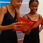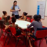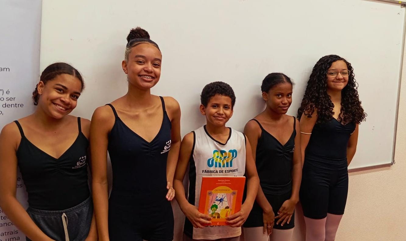 O gênero dramático também foi explorado por meio da técnica da leitura de mesa, que consiste na primeira leitura coletiva do texto teatral. Essa abordagem possibilitou aos participantes compreenderem a obra como um todo, bem como seus respectivos papéis, por meio da leitura das falas com entonação natural. Para a atividade, foi utilizada a esquete teatral “Os Vizinhos”, de autoria de Henrique Sitchin, com definição de personagens, narrador e organização da leitura coletiva.