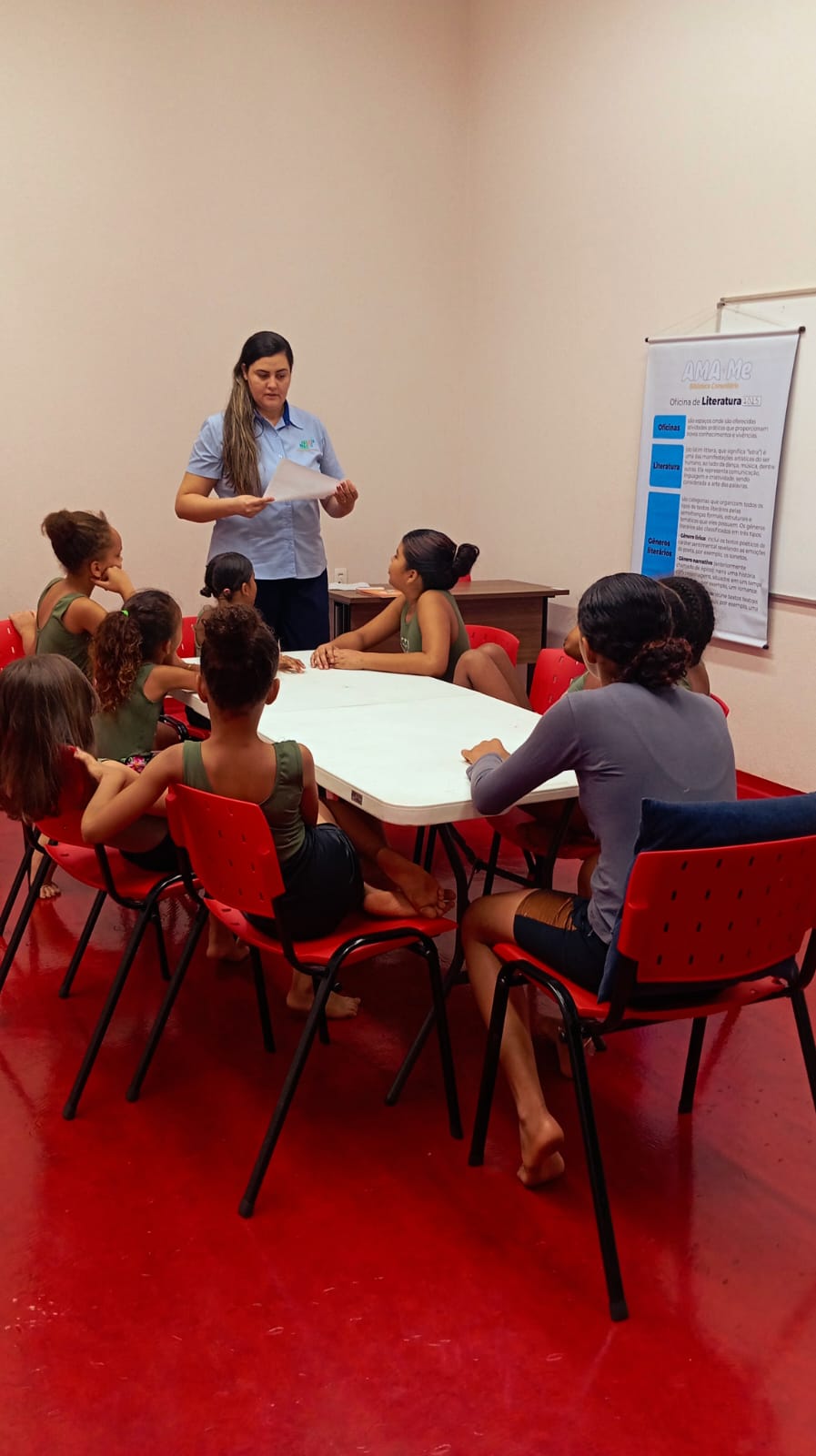 Durante o mês de outubro, as Oficinas de Literatura realizadas na Biblioteca Ama-Me aprofundaram o estudo dos gêneros literários, com ênfase no gênero lírico. Ao longo das atividades, foram trabalhados conceitos como verso, estrofe e rima, proporcionando aos participantes uma compreensão mais estruturada da linguagem poética.