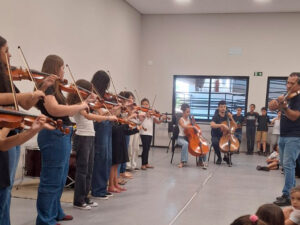Com a certeza do bom trabalho realizado, os Polos do Projeto Guri nos núcleos do Instituto Oswaldo Ribeiro de Mendonça – IORM, nas cidades de Guaíra, Ipuã, Miguelópolis e Orlândia, encerraram as aulas de 2025 com apresentações que celebraram um ano de intenso desenvolvimento humano e musical. As apresentações de final de semestre não foram apenas mostras de talento, mas sim a celebração do Guri, o maior programa de educação musical e desenvolvimento humano do Brasil, que completa 30 anos em 2025.