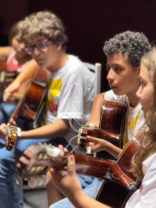 O naipe de Violão, composto por 18 alunos emocionou ao unir a doçura das turmas iniciais em canções como Cai Cai Balão e Escravos de Jó, com a técnica dos alunos adolescentes em composições mais elaboradas como Wicked Game.