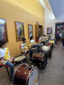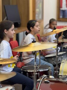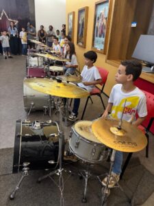 Os alunos de Percussão e Modular de Percussão apresentaram três composições próprias, Tum pá, Forró do aro e Pout pourrit Ritmos brasileiros, demonstrando a criatividade e o potencial dos Guris. O naipe também deu uma prévia de 2026 com a introdução do pandeiro ao repertório.