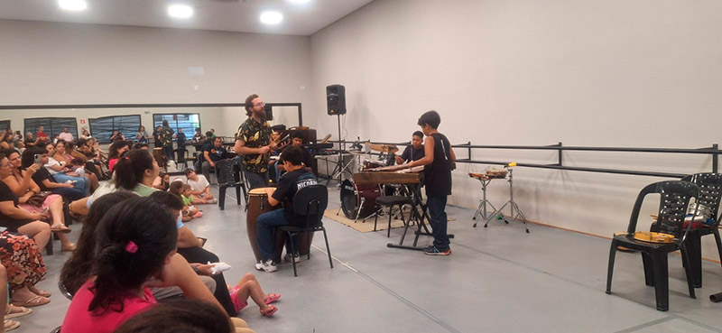 O evento, que reuniu cerca de 200 pessoas entre famílias, amigos e autoridades na plateia, como o Secretário de Turismo Antônio Ferreira e o presidente do Conselho Municipal de Cultura Ítalo Magalhães, destacou a diversidade e a dedicação dos 61 alunos de 06 a 62 anos de idade. A apresentação foi conduzida pela coordenadora do Polo, Rubiane Tahaci Sandoval e contou com os educadores Juliana da Silva Eleotério (Coral), Francis Douglas da Silva Inácio (Violão) e Marcos José da Silva (Percussão).