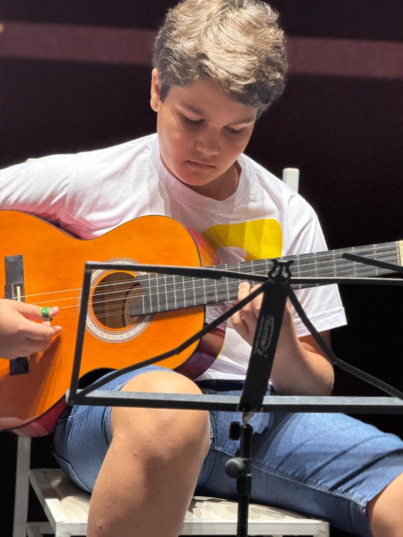 O naipe de Violão, composto por 18 alunos emocionou ao unir a doçura das turmas iniciais em canções como Cai Cai Balão e Escravos de Jó, com a técnica dos alunos adolescentes em composições mais elaboradas como Wicked Game.