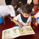 Os pequenos exploraram os diferentes cantinhos da biblioteca, manusearam livros infantis do acervo e aprenderam, de forma lúdica e acolhedora, que ler é também brincar e viajar sem sair do lugar.
