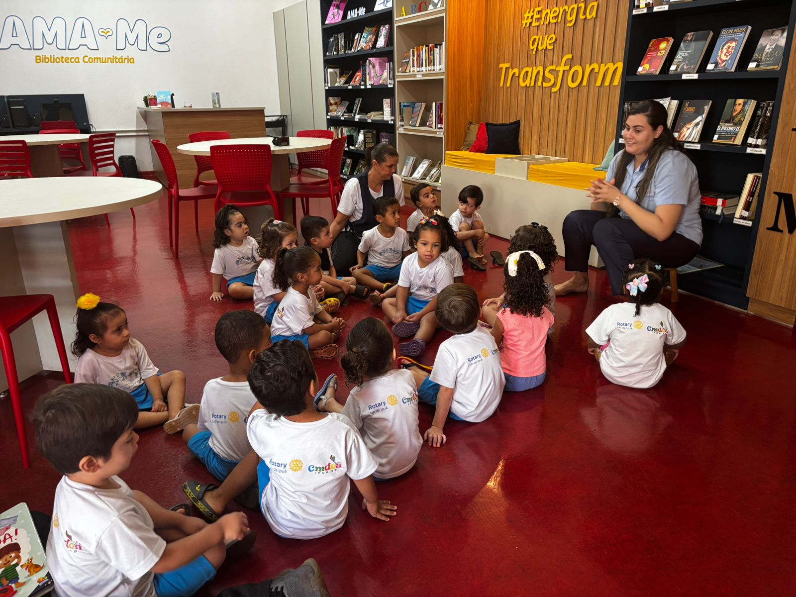 Os pequenos exploraram os diferentes cantinhos da biblioteca, manusearam livros infantis do acervo e aprenderam, de forma lúdica e acolhedora, que ler é também brincar e viajar sem sair do lugar.