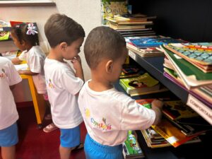 Curiosidade e encantamento marcam a visita dos alunos à Biblioteca Municipal Dr. Carlos Antônio de Almeida Covas, em Miguelópolis